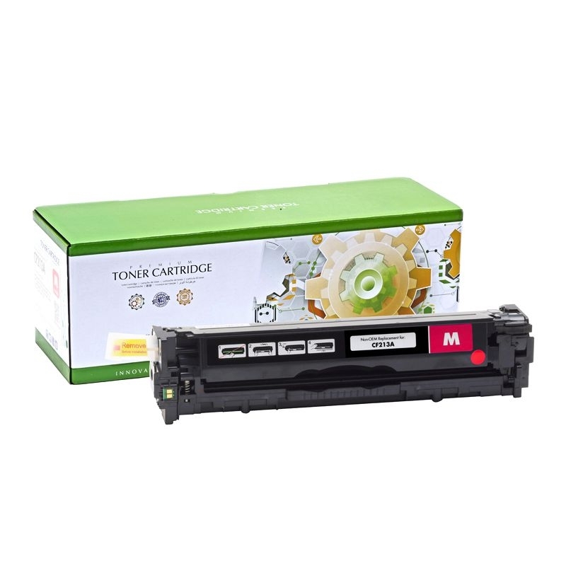 - Додатковим плюсом для сумісного картриджа CF213A є наявність у нього чіпа, який контролює кількість надрукованих сторінок. В інших виробників аналогічної продукції, чіп не ставиться для здешевлення виробництва і його доводиться переставляти зі старих відпрацьованих картриджів, щоб ваш апарат працював.