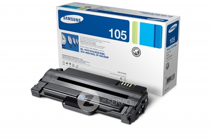 Картридж Samsung MLT-D105S має вбудований чіп, що контролює кількість надрукованих сторінок. Після того, як чіп відраховує кількість надрукованих сторінок згідно ресурсу картриджа, апарат блокує свою роботу до заміни картриджа. Щоб відновлення роботи потрібно встановити або новий картридж, або прошити апарат. Потрібно одноразове прошивання друкувального пристрою (принтер, БФП) після чого він не буде блокуватися, і можна буде заправляти картридж. Або можливе заправлення із заміною чіпа без прошивки апарата (у вартість заправки не входить).
