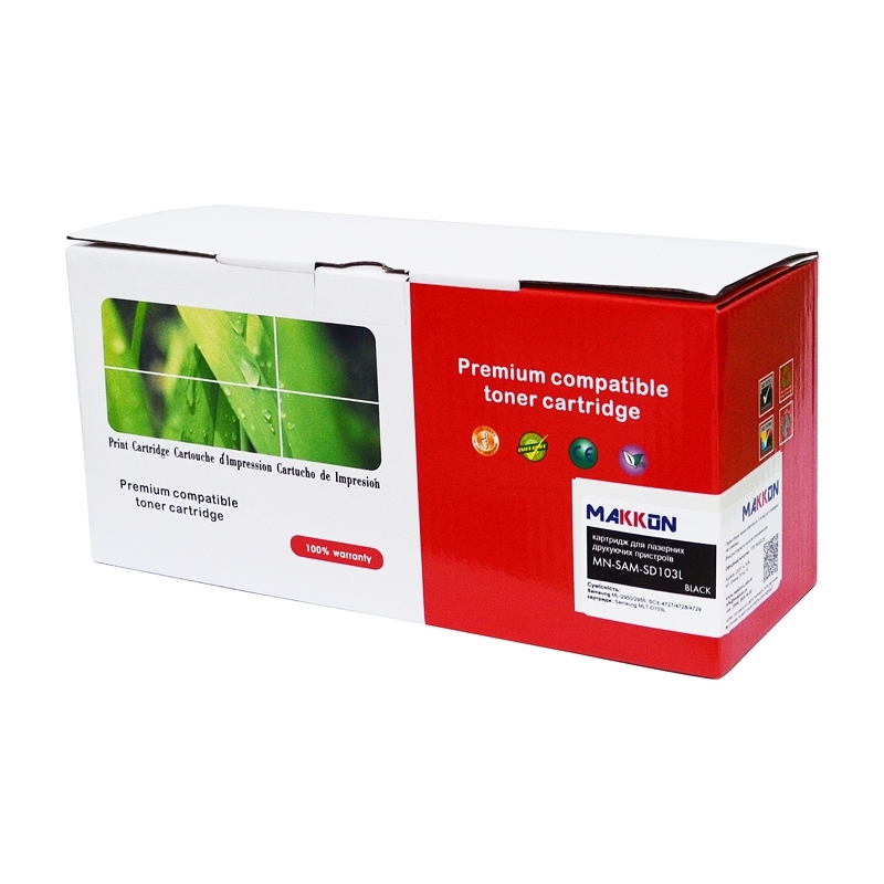 MLT-D103L аналог – це сумісний картридж від торгової марки Makkon для принтерів та БФП Samsung ML-2950, ML-2955, SCX-4728, SCX-4729. Він є аналогом Samsung MLT-D103L.
